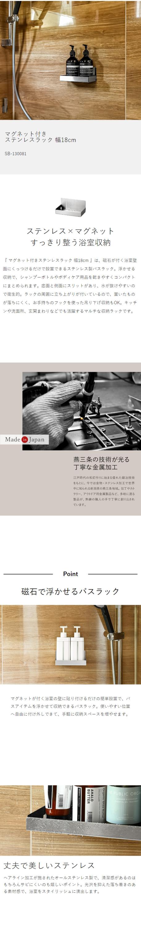 [ マグネット付きステンレスラック 幅18cm ]店舗限定 日本製 幅18センチ マグネット ボトルラック マグネット バスルーム 磁石 シャンプーボトル 棚 収納ラック 浴室収納 ステンレス バスラック 燕三条 壁面収納 浮かせる収納 SB-130081
