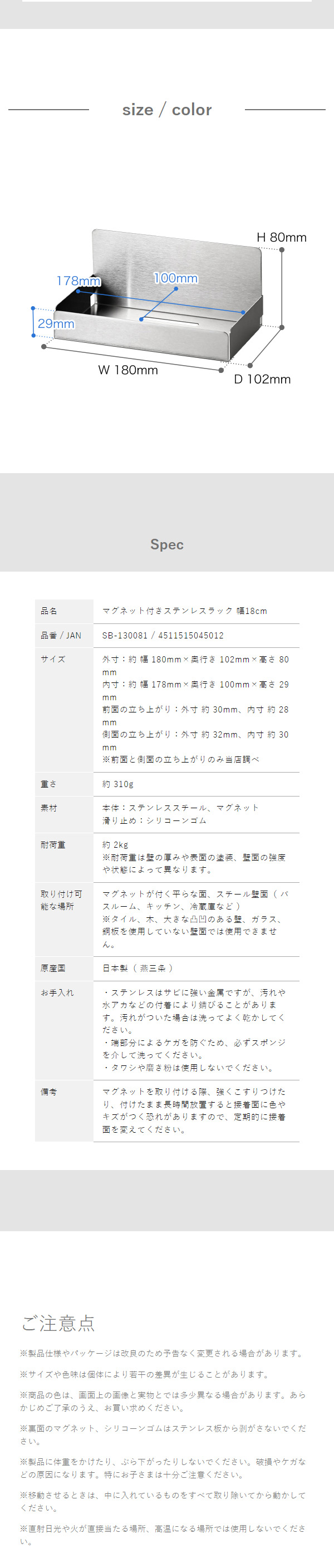 ■ マグネット付き ステンレスラック 幅18cm