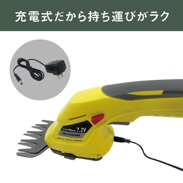 【数量限定】【58%引き】 ムサシ おてがる2WAYバリカン(QP-170) 充電式 内臓バッテリー リチウムイオン電池 芝刈り 刈込 刈り込み 剪定 生垣 庭木 花 ガーデン DIY ガーデニング ガーデントリマー ヘッジトリマー 剪定バリカン 電動 コードレス