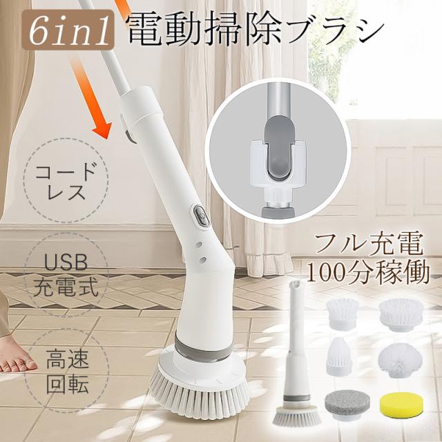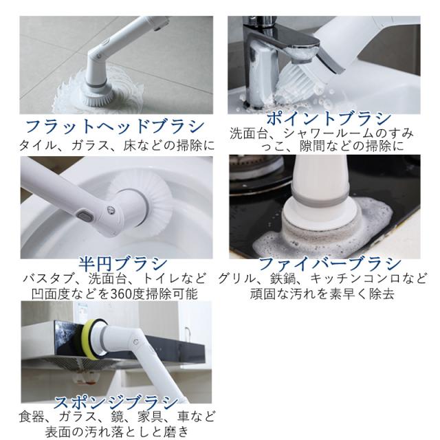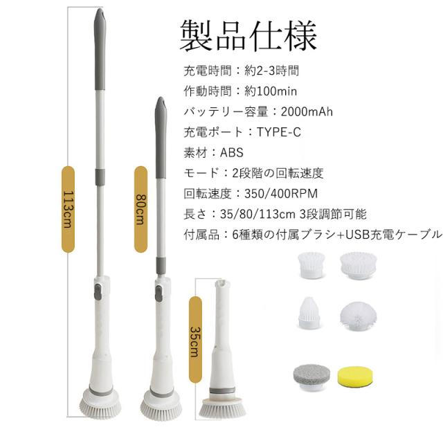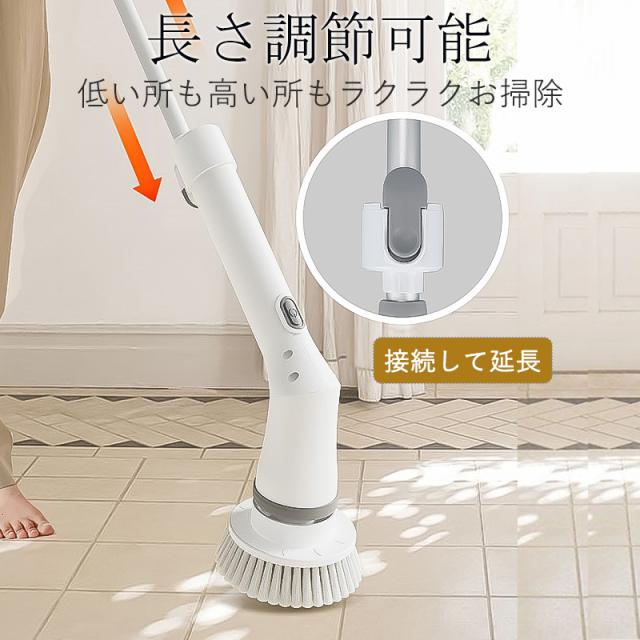 電動ブラシ 電動掃除ブラシ コードレス バスポリッシャー 高速回転 伸縮式 軽量 ハイパワ USB充電式 バススポンジ 風呂 掃除