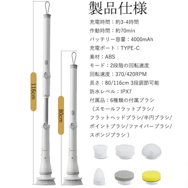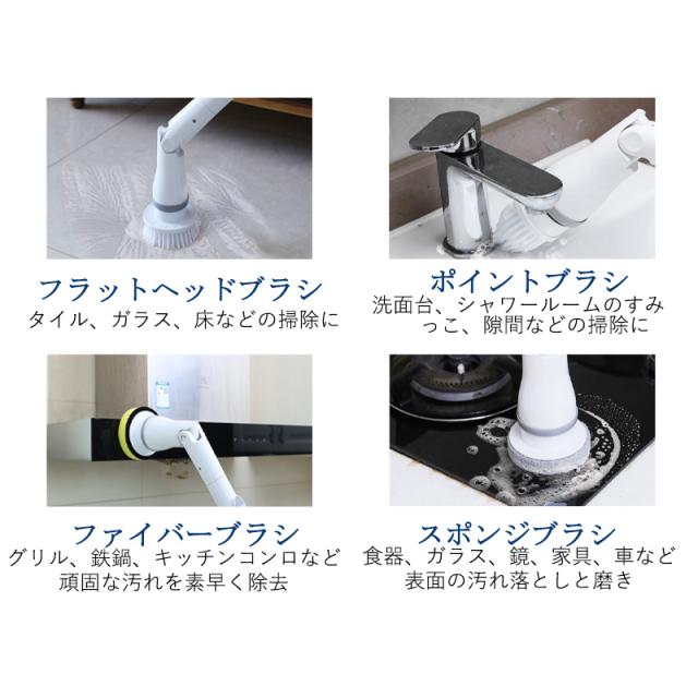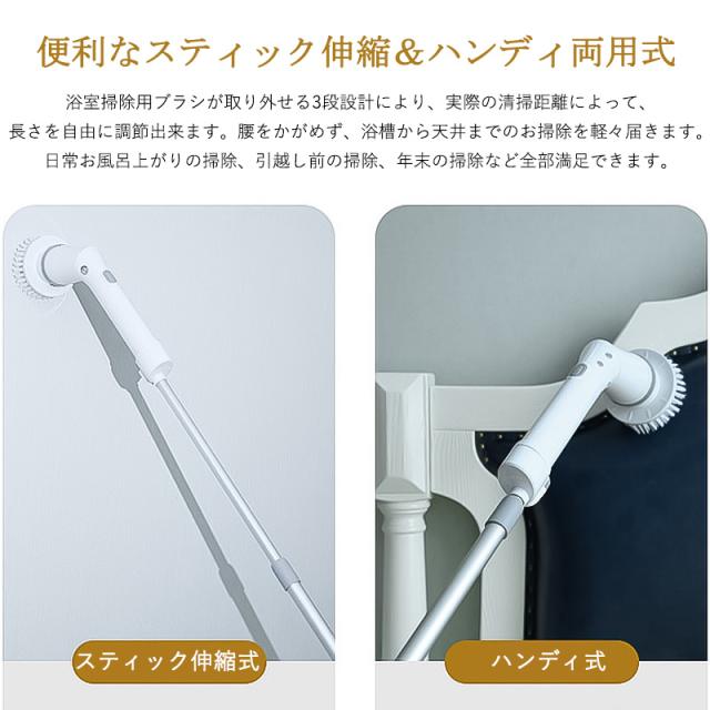 電動ブラシ バスポリッシャー 掃除ブラシ コードレス 充電式 高速回転 風呂掃除 長さ調整 バススポンジ 角度調節 洗車 床掃除