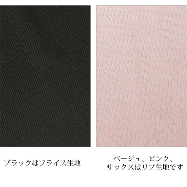 【生地に関して】ブラックはフライス生地ベージュ、ピンク、サックスはリブ生地