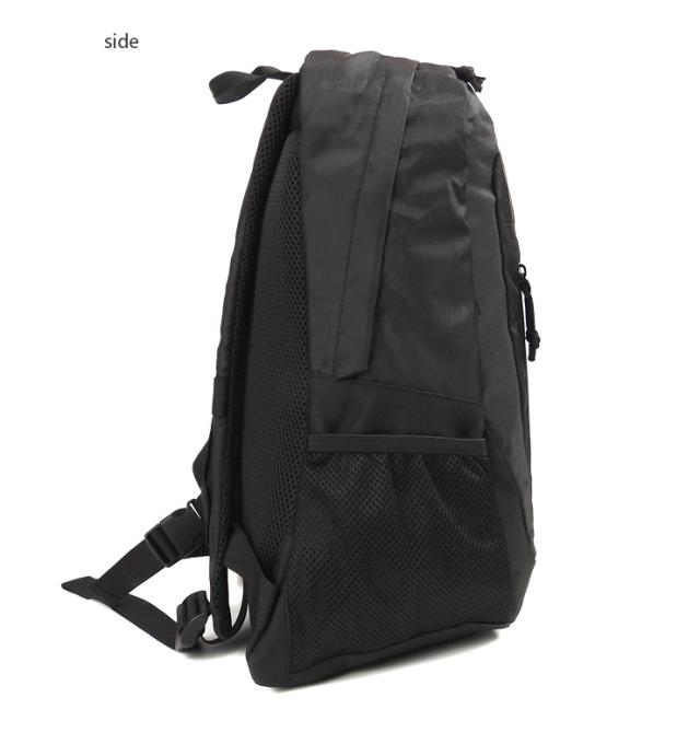 両サイドは500mlのペットボトルが納まるメッシュポケット付き。