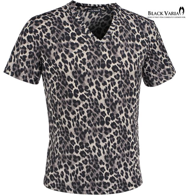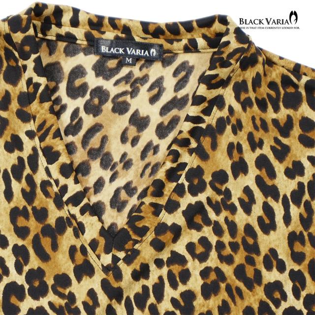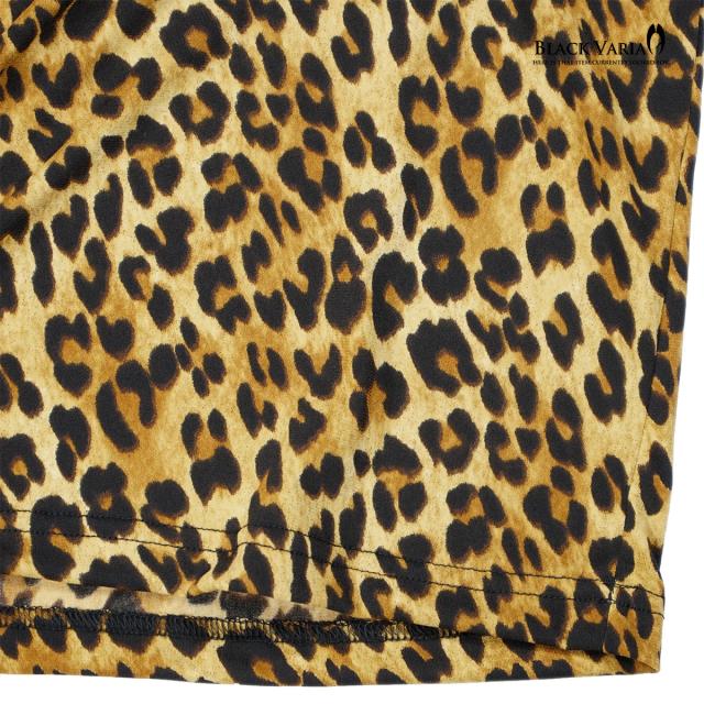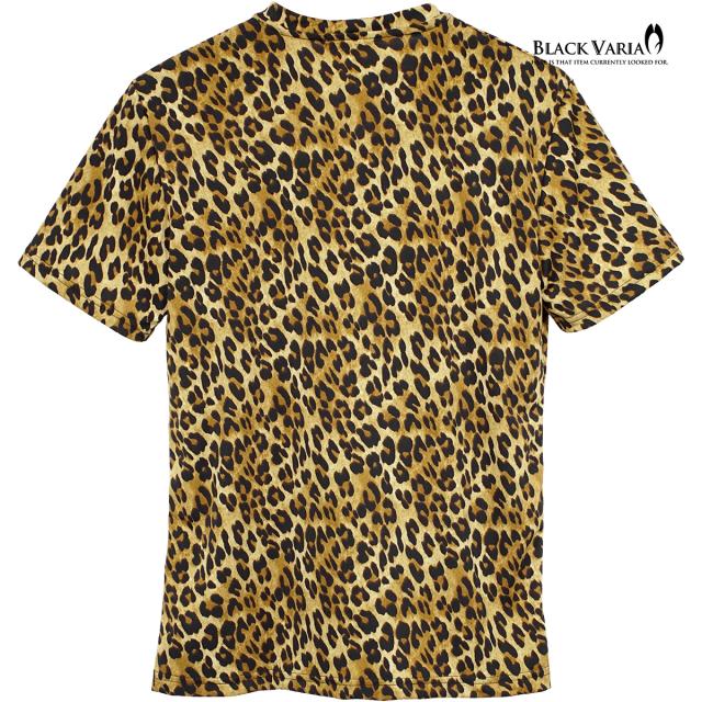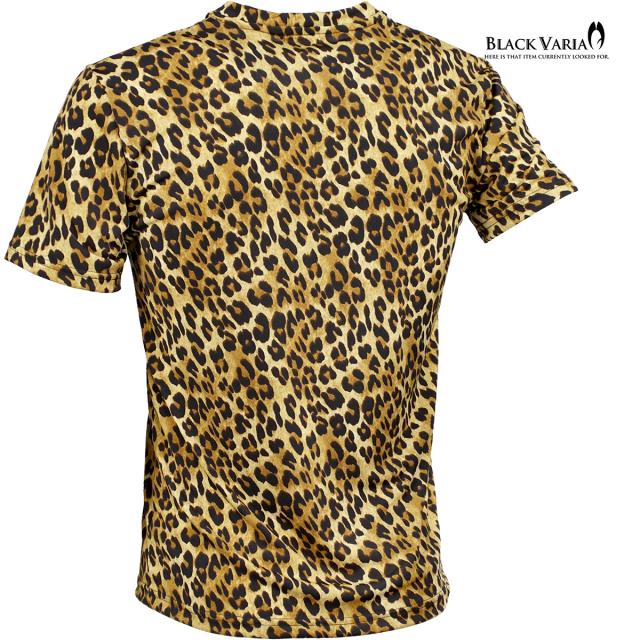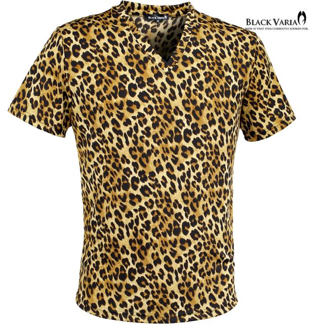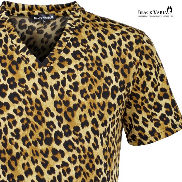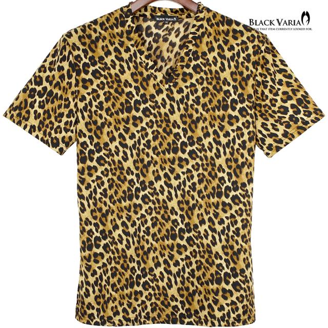 メール便可/一枚まで Tシャツ 半袖 Vネック ヒョウ柄 豹 レオパード メンズ 派手 スリム ストレッチ mens(イエロー黄) 241309