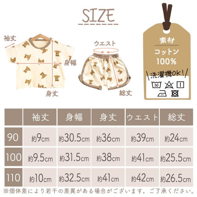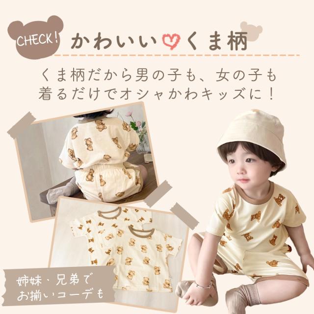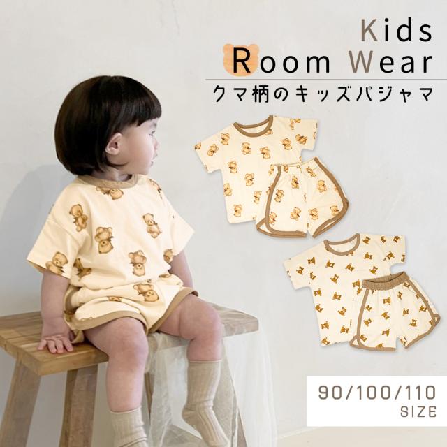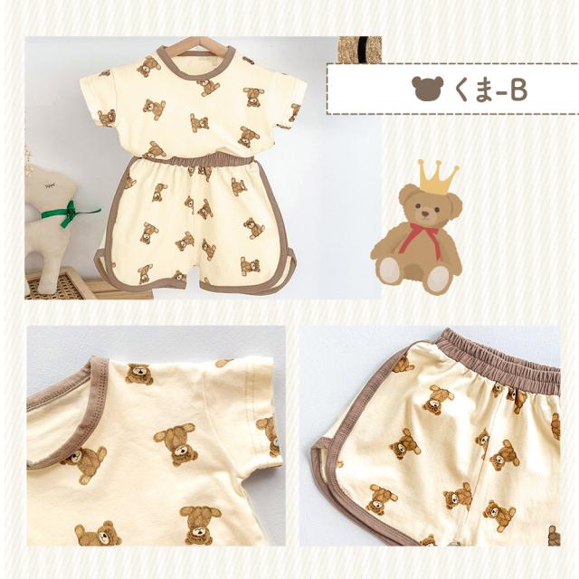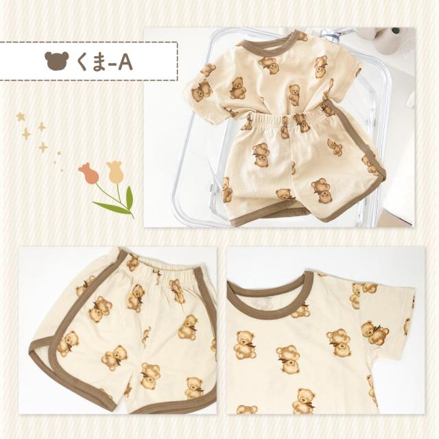 キッズパジャマ/上下セット/クマ柄/半袖/短パン/綿100%/コットン/春/夏/動物柄/かわいい/おしゃれ/90/100/110/男の子/女の子/ルームウェア/上下/子ども/こども/パジャマ/トップス/ボトムス/シャツ/パンツ/セット/普段着/部屋着/子供パジャマ/ベビー/セットアップ/寝巻/シンプル/キッズ服/お出かけ/旅行/お泊り/半袖パジャマ/プレゼント/贈り物/ハーフパンツ/半袖シャツ/TN-PJBR/