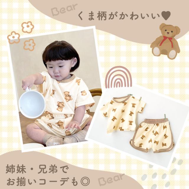 キッズパジャマ 上下セット クマ柄 半袖 短パン 綿100% コットン 春 夏 動物柄 かわいい おしゃれ 90 100 110 男の子 女の子 ルームウェア 上下 パジャマ トップス ボトムス シャツ パンツ セット 普段着 部屋着 ベビー セットアップ 寝巻 シンプル お出かけ MILASIC TN-PJBR