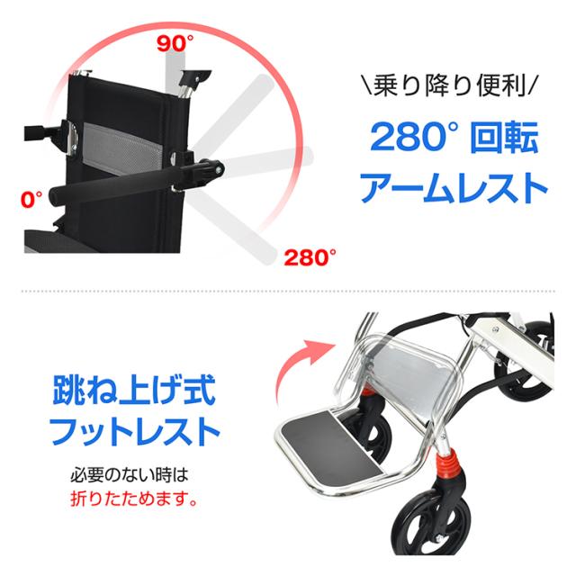 - 今回はとても早い対応に感謝します(*?????)?*.゚ 足の悪い母の為に購入しました。 とても軽く折りたたみも簡単で肘掛けが上がるのが乗り降りするのにとても楽そうでブレーキなどもしっかりしていて安心して使えそうです! 何よりとてもコンパクトになるので軽四に載せても場所も取らず持ち運びにもとてもよくこれからは行動範囲が広がりそうです! 自走式よりもコンパクトなのと小回りもきくので室内でも余裕で使えそうです。