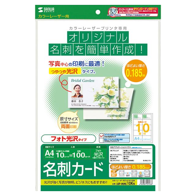 【メール便発送】サンワサプライ カラーレーザー用フォト光沢名刺 LBP-MMC10KN