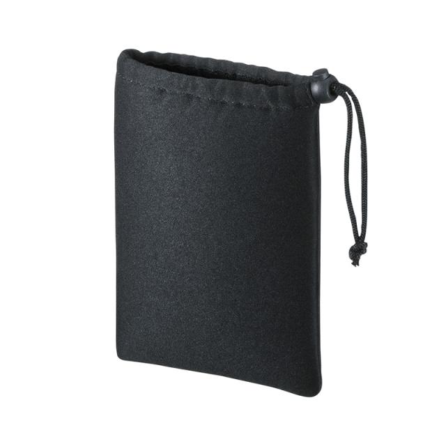 様々な用途に大活躍、機器を優しく保護するマルチクッションケース。巾着タイプ・ブラック。