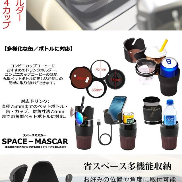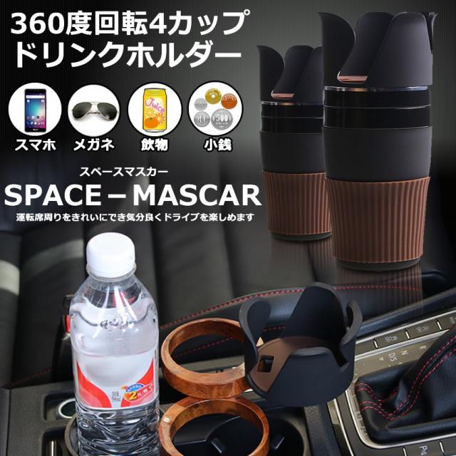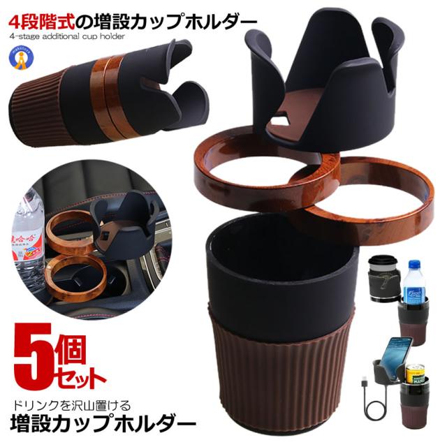 5個セット 車 カップホルダー 4段階式 スペース カー 車用 ドリンクホルダー 増設 4個 省スペース 360度回転 スマホ サングラス 収納 飲物 汎用 SPACECAR f0626-28a