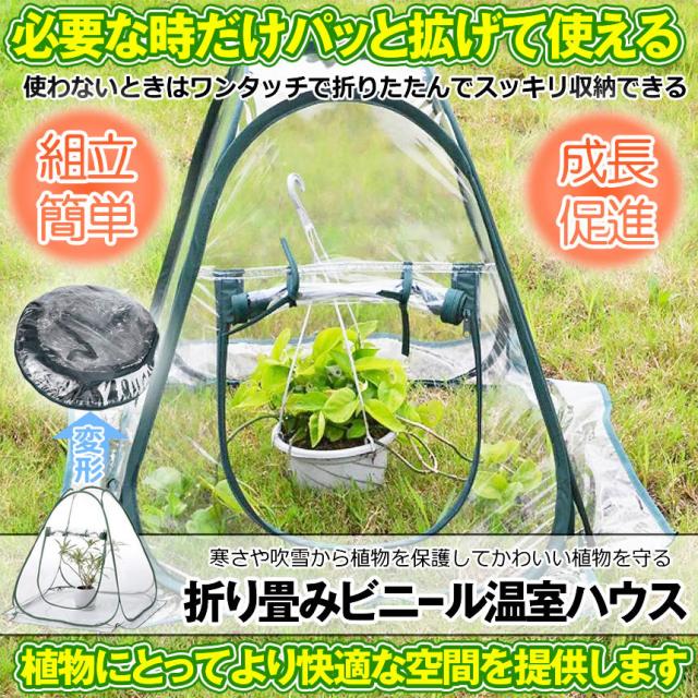 温度が下がる朝夕時、寒い季節、霜や雪からかわいい植物を守る簡易温室です。