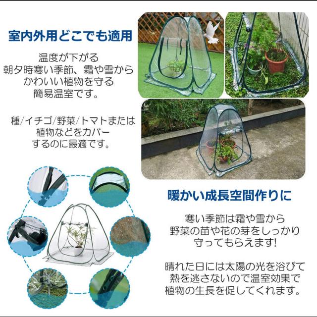 いつでもどこでもパッと拡げて支柱をセットするだけで使えます。種、イチゴ、野菜、トマト、または植物などをカバーするのに最適です。
