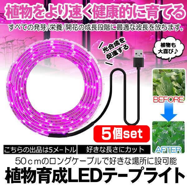 5個セット 植物育成ライト 5m USB LEDテープライト USB給電 日商不足解消 光合成 多肉植物 水耕栽培 育成 自由研究 野菜 室内 観葉植物 家庭菜園 SODATU m-mi1120-11a