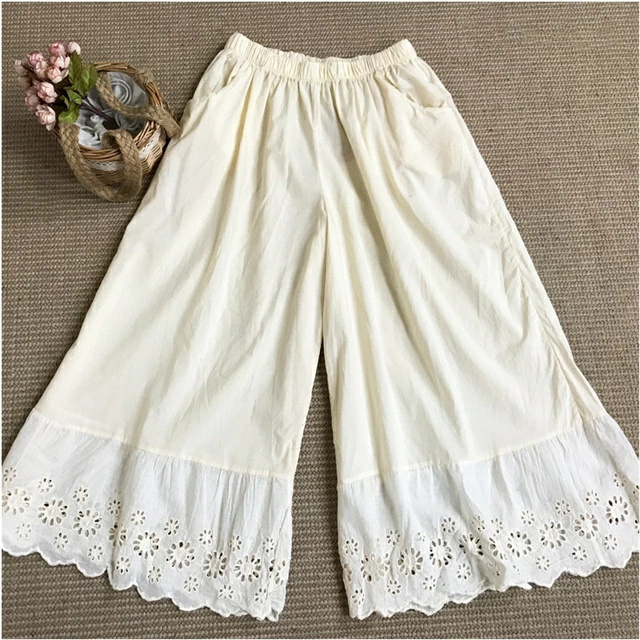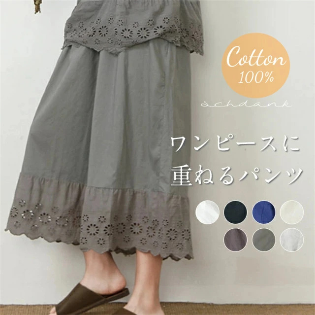 【一部即納】ペチパンツ ペチコート 綿麻インナー パンツ レース ロング 春 夏 透け防止 重ね着 レイヤード ゆったり 大きいサイズ レディース おしゃれ キレイめ ナチュラル シンプル レース付きペチパンツ 体型カバー ウエストゴム ワイド 黒 白