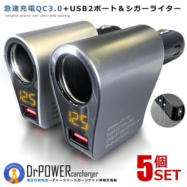 5個セット USB カーチャージャー シガーソケット 車載充電器 分配器 QC3.0 80W/5V ライター 3ポート 急速充電 LED付 オート電圧測定 PAFESOKE2 s-kj2208-10a