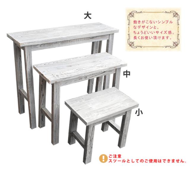 フラワースタンド おしゃれ ホワイトスツール風花台 3点セット 木製花台 木製机 天然木 杉材 スリム 北欧風 ナチュラル 観葉植物 ベランダ テラス 屋内 組立品