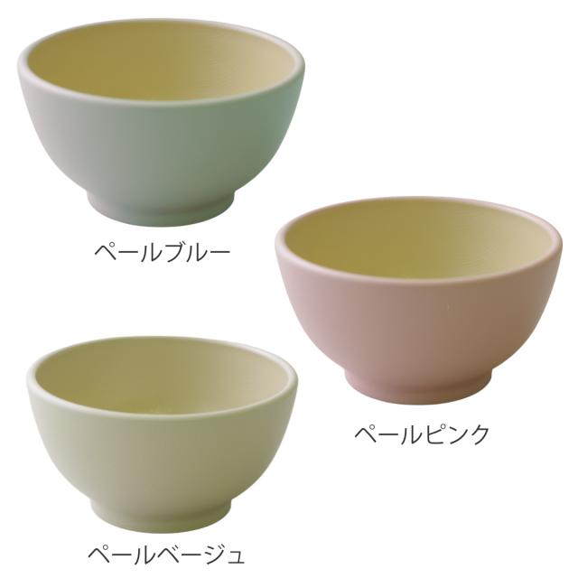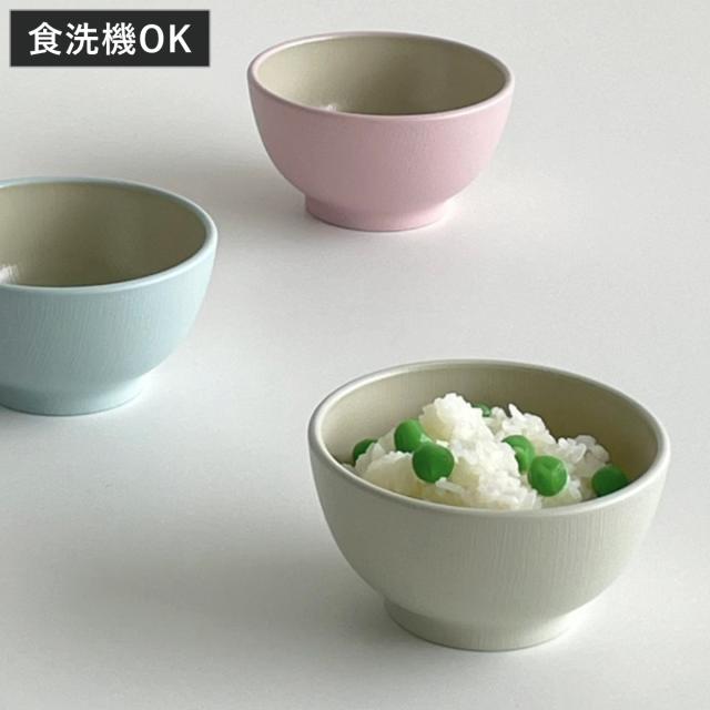 やさしい色合いのペールカラーの子ども用茶碗です。お子様の手にすっぽりと収まりやすい小ぶりなお茶碗です。樹脂製で割れにくく、安心してお使いいただけます。