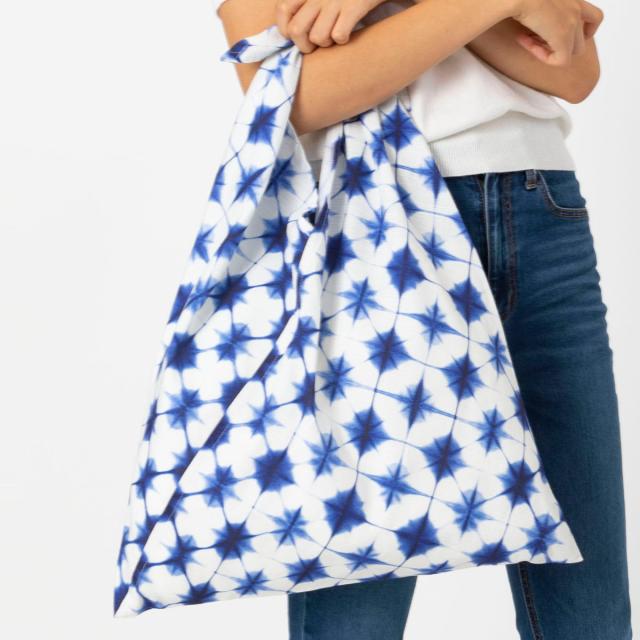 あずまトートとは、ふろしきを縫い合わせてカバンとして使う、一枚の生地を活用する日本人の知恵から生まれたエコバッグです。軽くて丈夫で普段はコンパクトに畳んでバッグの中に。汚れてもご家庭で洗濯出来るのでお手入れも簡単です。使い方は先端の三角の箇所を結んで持ち手を作ってください。