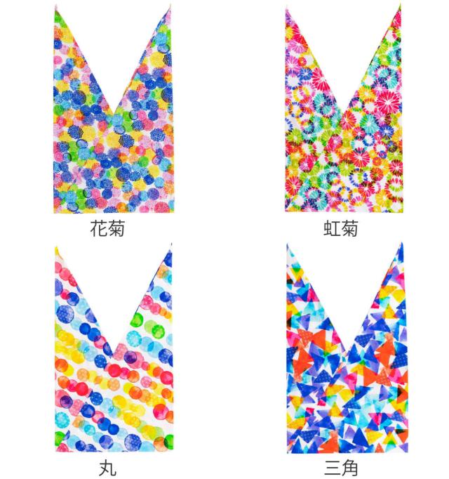| 種類 | 綾、杉葉、市松、縞、水玉、椿、花菊、虹菊、丸、三角 |