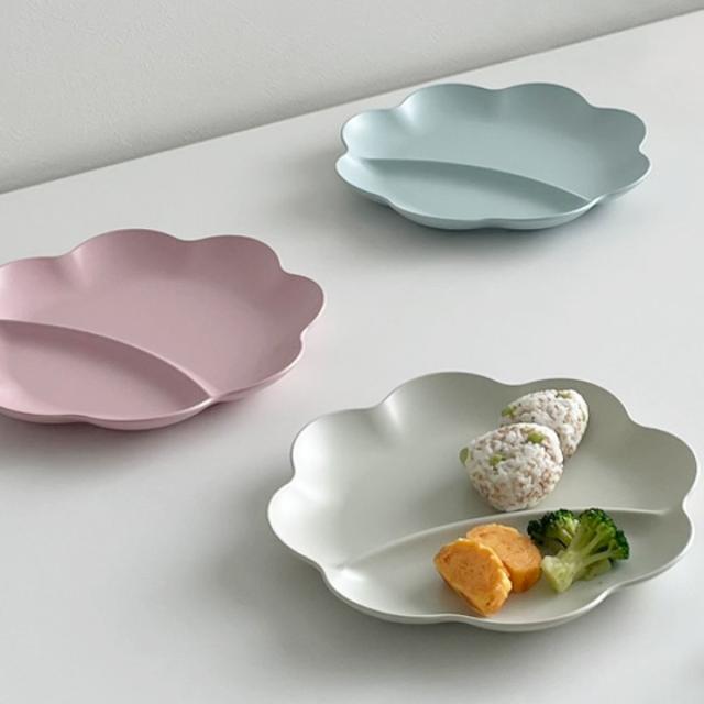 プレート 25cm フラワープレート プラスチック ( 食洗機対応 電子レンジ対応 皿 お皿 大皿 ワンプレートディッシュ 仕切皿 軽い 割れにくい ペールカラー ワンプレート 仕切り付き 2つ仕切り 花型 子ども用 シンプル おしゃれ )