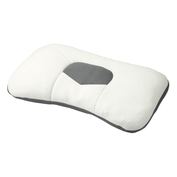 ★ 頸部支持ゾーンは詰めものが流動して首の形状に沿う上層部分と、底の部屋が詰めものを固定し首(頸部)をしっかり支える下層部分の二層構造です。下層部分はさらに3か所に分かれており、仰向き寝の時は中央・横向き寝の時は左右の部屋が首(頸部)を支えます。