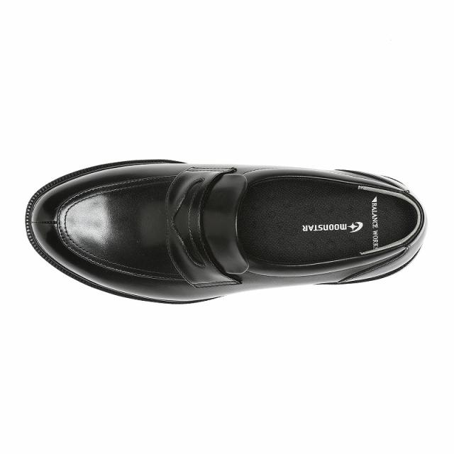 足のストレスを軽減するビジネスシューズ「バランスワークス」シリーズの4E(幅広)タイプです。「柔らかさ」と「安定性」を両立させた快適な着用感に加え、従来品から「軽量性」と「衝撃吸収性」をさらにアップさせたモデルです。バランス能力に関係する感覚の一つである足裏感覚を刺激する設計のインソールと、中央部のくぼみで安定性に優れる設計のアウトソールを搭載しました。ムーンスター独自開発の機能で足と靴のグラつきを抑え、着用ストレスの軽減に貢献します。日常の通勤や外回り、就活等で足元から快適を求めるあなたにおすすめです。デザインはローファータイプ、重量は片足約260g/25.5cmです。【ワイド設計】幅広の方に対応した商品です。【耐摩耗ラバー】靴底の踵部と踏み付け部に耐摩耗ラバーを使用しています。