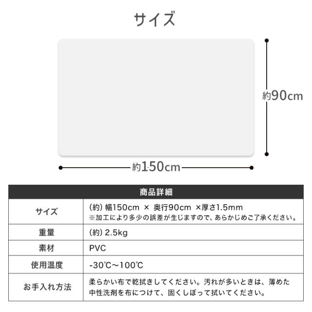 テーブルマット 透明 テーブルクロス クリア 150×90cm マット 拭ける ダイニング 抗菌 防臭 厚1.5mm おしゃれ 撥水 水拭き PVC ビニール 傷汚れ防止 水拭き 台所 机 食卓 デスク ダイニングマット