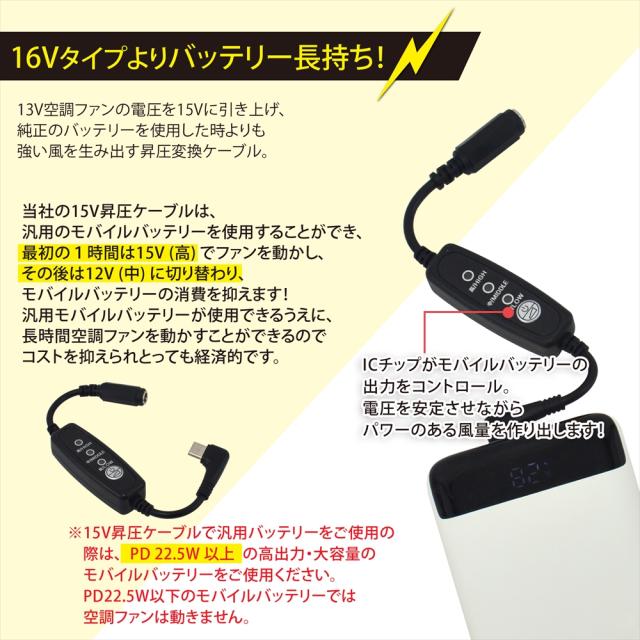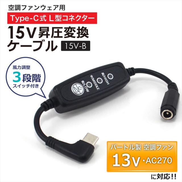 15V Type-C昇圧 アダプター L型 13V バートル対応 AC270 Type-C PD対応 モバイルバッテリー ファン付き作業服 2021年 AC271 AIRCRAFT 変換 昇圧ケーブル ケーブル ハイパワー 電圧不足 USB-C端子 タイプC 昇圧コンバータ スイッチ付き 【15V-B】