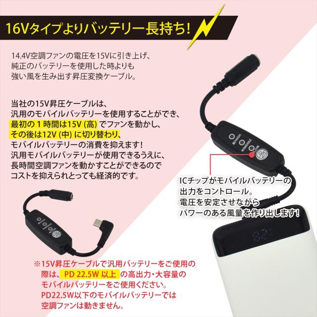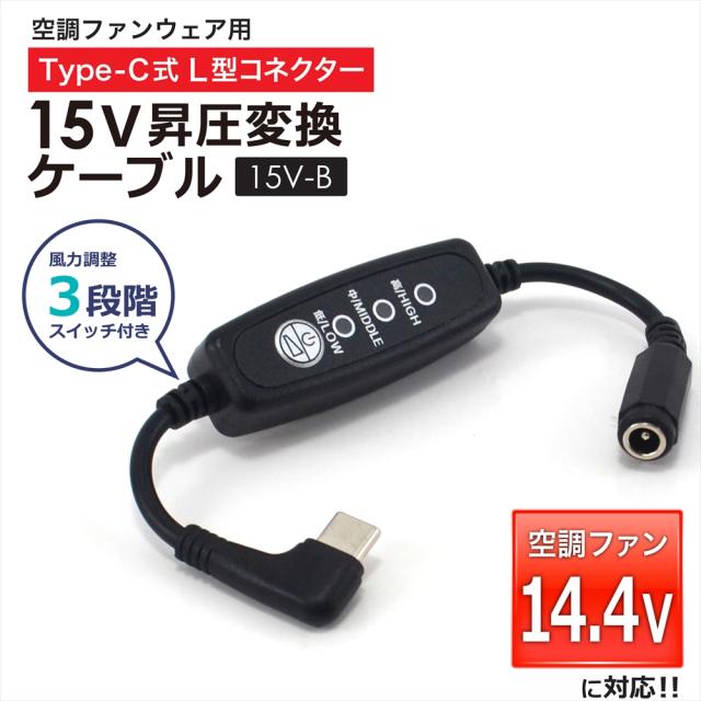 15V Type-C昇圧 アダプター L型 14.4V 空調ファン対応 Type-C PD対応 モバイルバッテリー ファン付き作業服 FA01012 ジーベック タカヤ商事 2021年 変換 昇圧ケーブル ケーブル ハイパワー 電圧不足 USB-C端子 タイプC 昇圧コンバータ スイッチ付き 【15V-B】