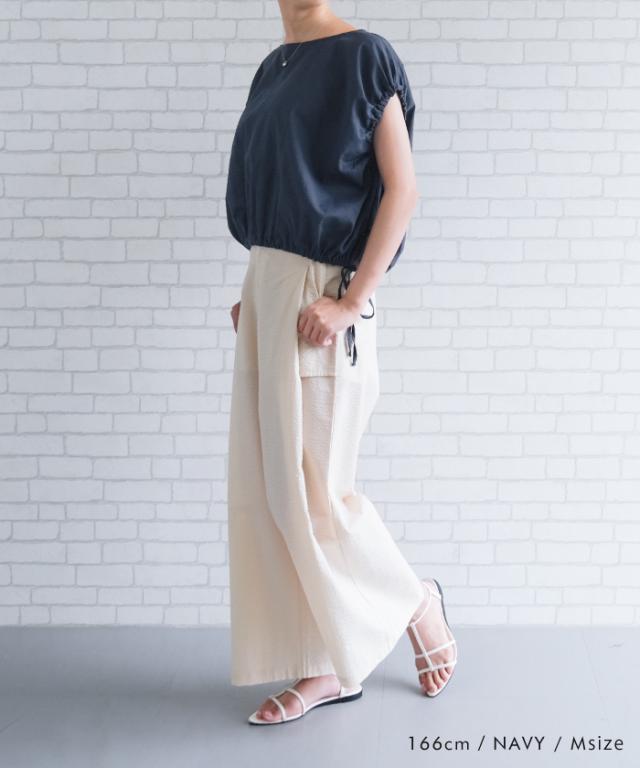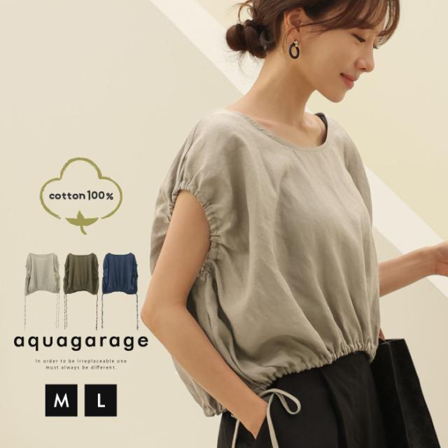 ≪ゆうメール便配送10・代引不可≫リネン素材ショート丈バルーンブラウス レディース 春 夏 アクアガレージ aquagarage