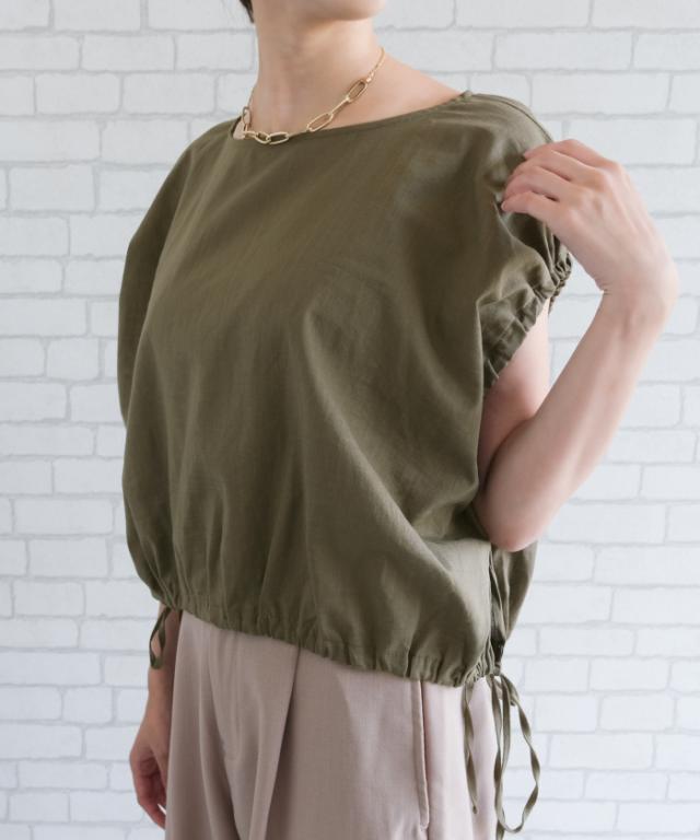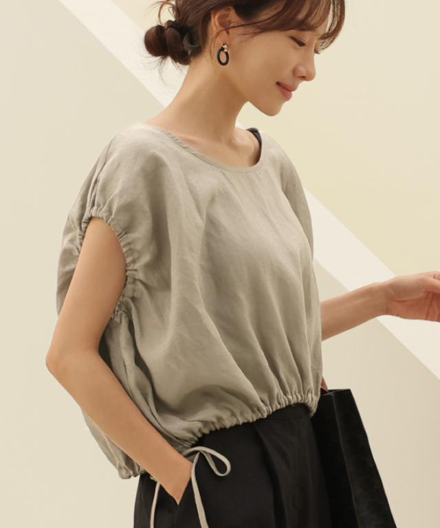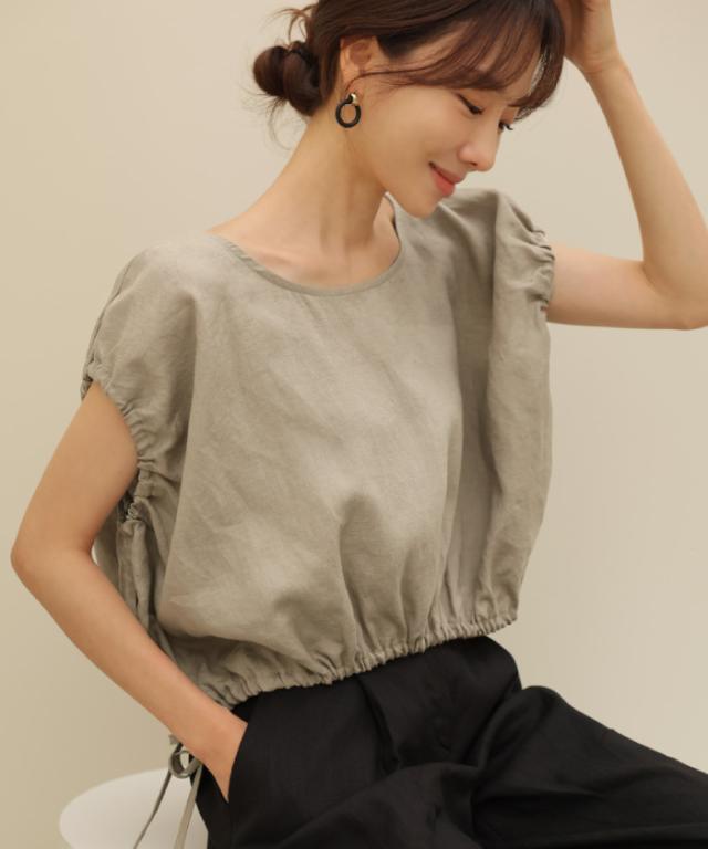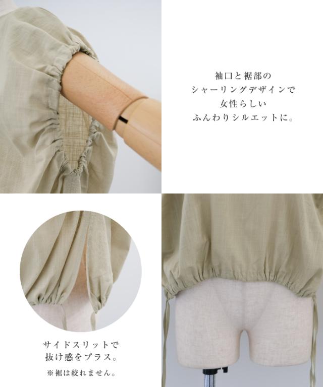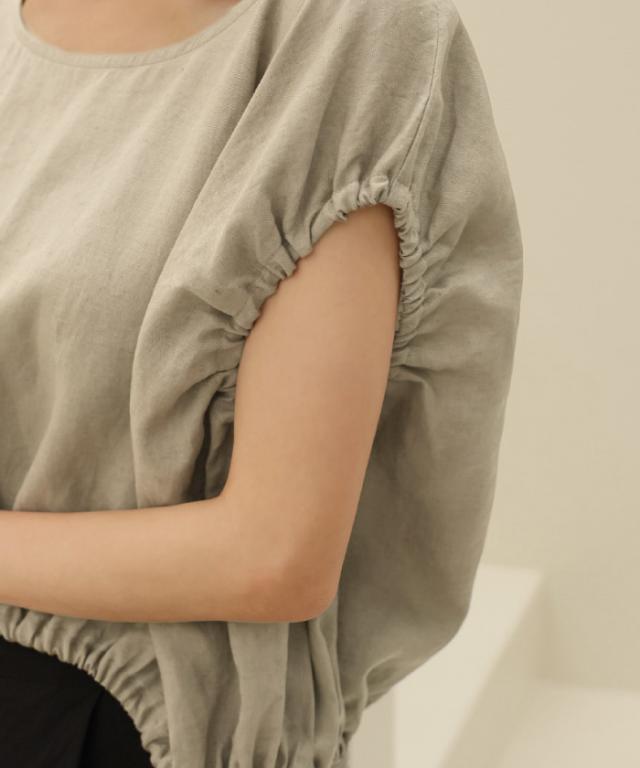 とにかく涼しいリネン素材のショート丈バルーンブラウス