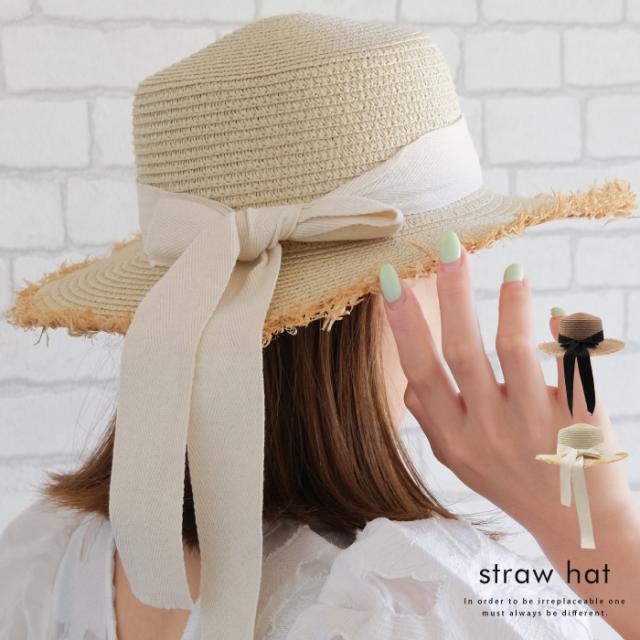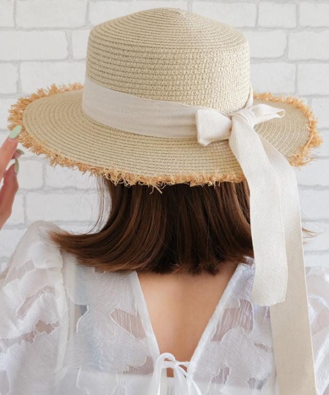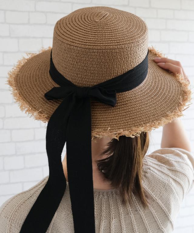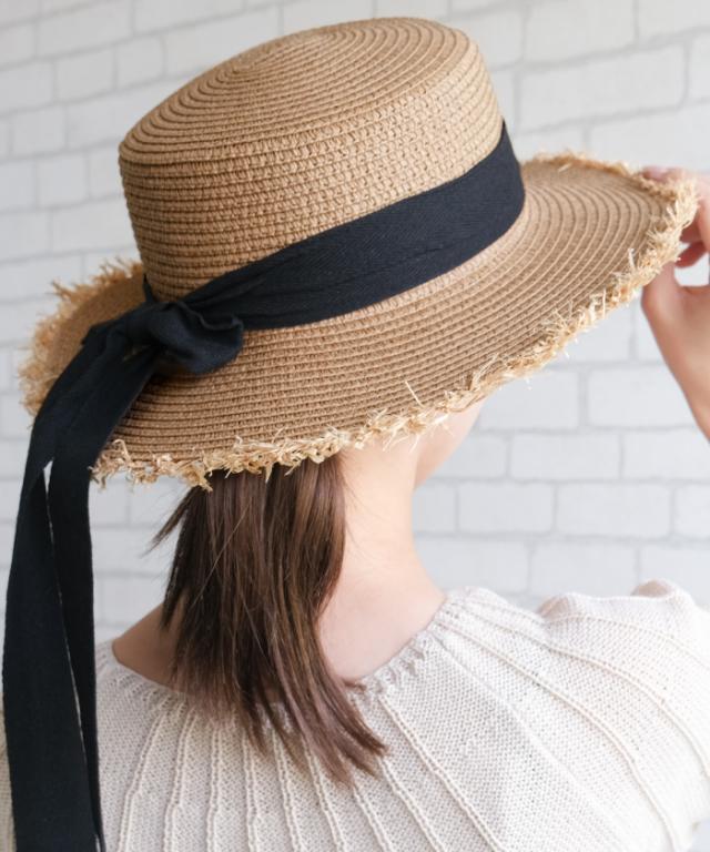 リボンが可愛さをアップさせてくれるシンプルリボンカンカン帽