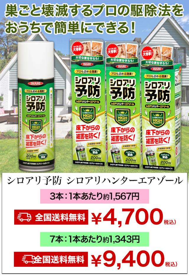 7本 シロアリ予防 シロアリハンターエアゾール200ml 白蟻予防 シロアリ駆除 シロアリ用スプレー 満足良品館 全国送料無料