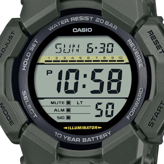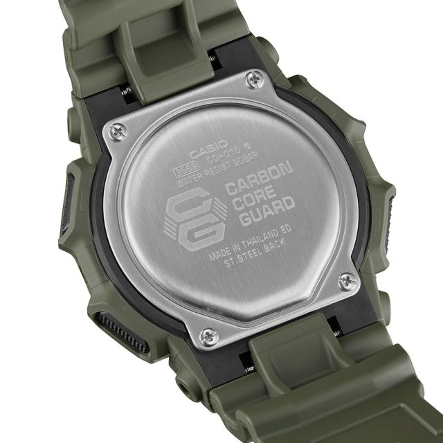 ワイドフェイスとビッグケースで、10年バッテリーを搭載したデジタルモデルのGD-010とデジタルアナログコンビモデルのGA-010は、ワールドタイム、ストップウオッチといった基本機能をはじめ、大型フロントボタンで操作しやすいスーパーイルミネーターにより暗闇での視認性も確保します。