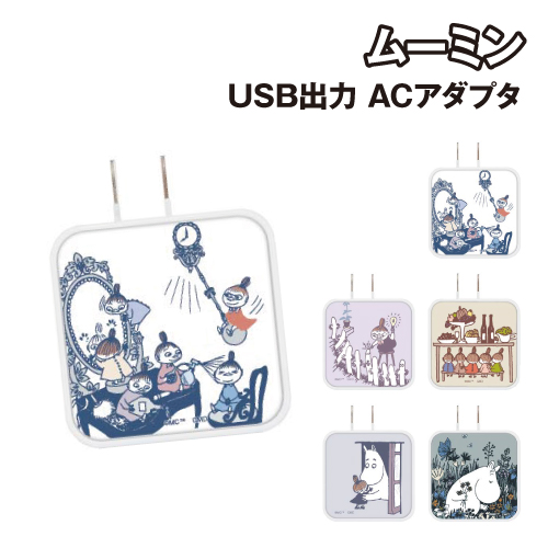 送料無料 ムーミン USB/USB Type-C ACアダプタ MMN-206 /いたずら ニョロニョロ きょうだい 窓 花畑