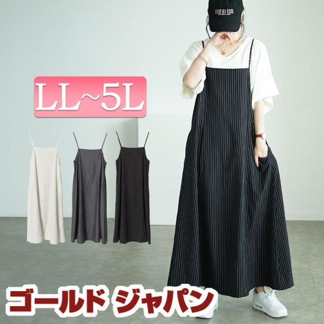 春新作 大きいサイズ レディース ワンピース ピンストライプフレアキャミワンピース ワンピ ロングワンピース ロング マキシ キャミ ストライプ 柄 ポケット フレア ストレッチ Aライン 夏服 春服 秋服 LL 2L 3L 4L 5L ブラック 黒 アイボリー チャコール ゴールドジャパン
