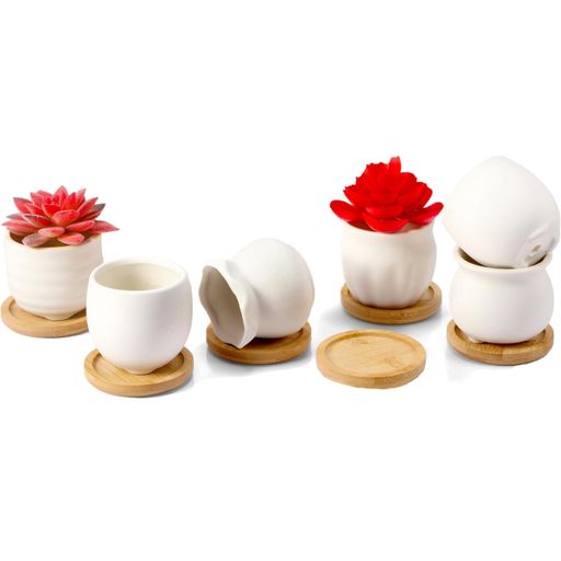 FACECOLOR ミニセラミックサボテンプランターポット セラミックホワイト 6個セット 多肉植物鉢 植木鉢 陶器鉢 多肉植物ポット ミニ植物用小型プランターポット ミ二観葉植物適用 竹製受け…