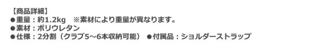 ●仕様:2分割(クラブ5〜6本収納可能) ●付属品:ショルダーストラップ