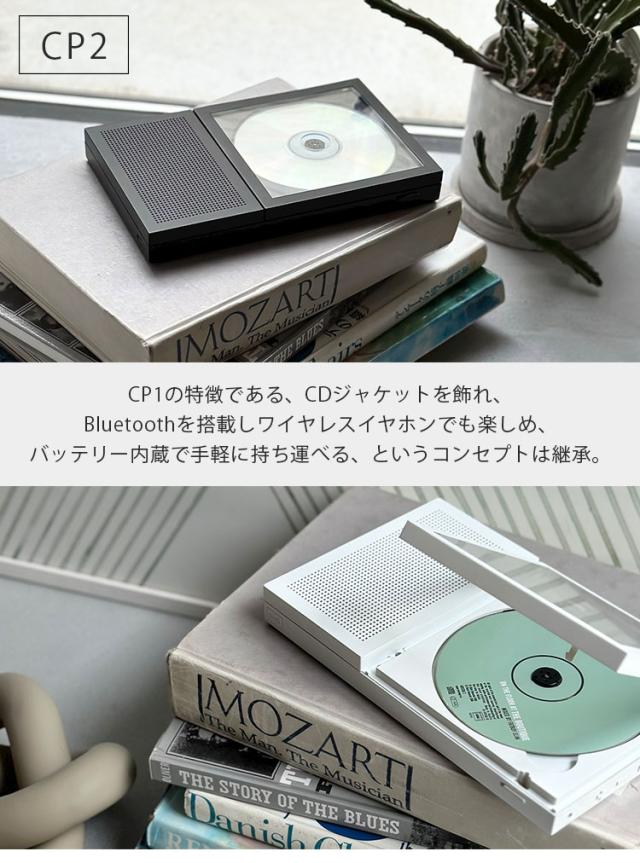 | スピーカーがあることでより簡単にCDを愉しめるCP2。CP1の特徴であるCDジャケットを飾れ、Bluetoothを搭載しワイヤレスイヤホンでも楽しめ、バッテリー内蔵で手軽に持ち運べる、というコンセプトは継承した商品になっております。 |