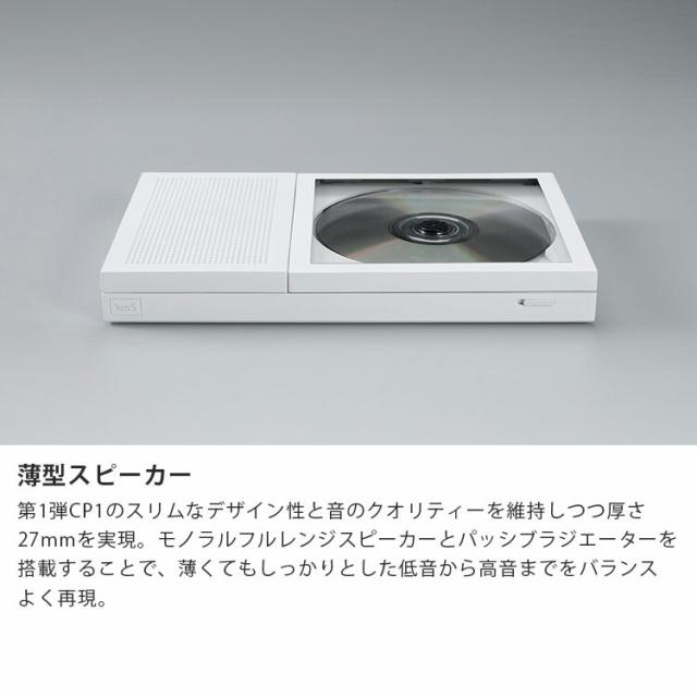 CP1のシンプルでミニマルなデザインを踏襲しつつ、新たにスピーカーを搭載。厚さはCP1とほぼ同等の薄さで表現。書籍の様な佇まいを目指しました。 CDプレーヤー内部に歌詞カードを収納し写真やアートを飾る様にお愉しみいただくことができます。 |