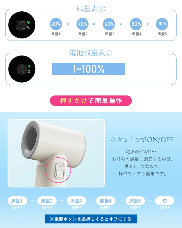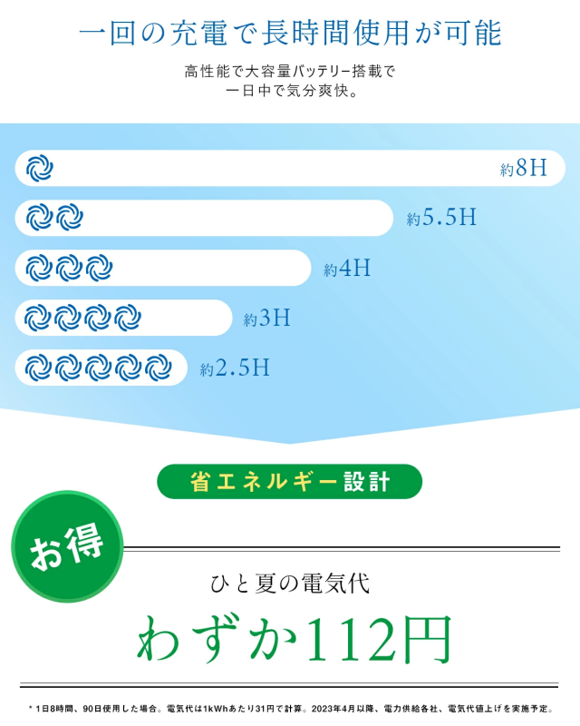 ・最大約8時間連続使用可能(送風モードで風量1の場合)