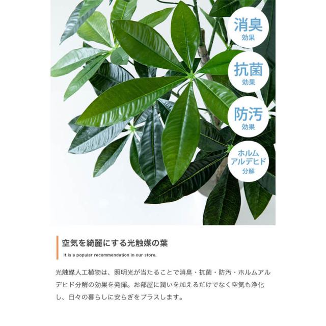光触媒人口植物は、照明光が当たることで消臭・抗菌・防汚・ホルムアルデヒド分解の効果を発揮。お部屋に潤いを加えるだけでなく空気も浄化し、日々の暮らしに安らぎをプラスします。