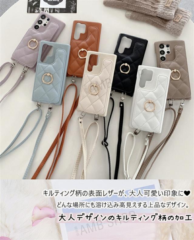 スマホショルダー Galaxy A53 ケース GalaxyS23FE ケースGalaxyS22ケース Galaxy A54 ケース A55 A52 5G キルティング スマホケース 韓国 ギャラクシー A55 A52 A54 A53 S24 S22 S23 FE Ultra 5G かわいい おしゃれ 背面 手帳型 カード収納 リング付き スタンド 大人かわいい