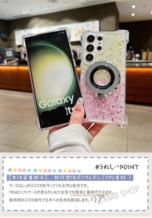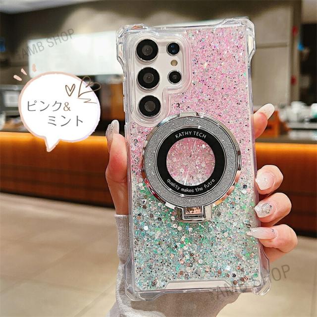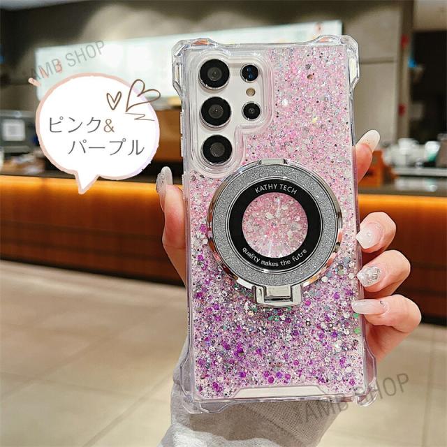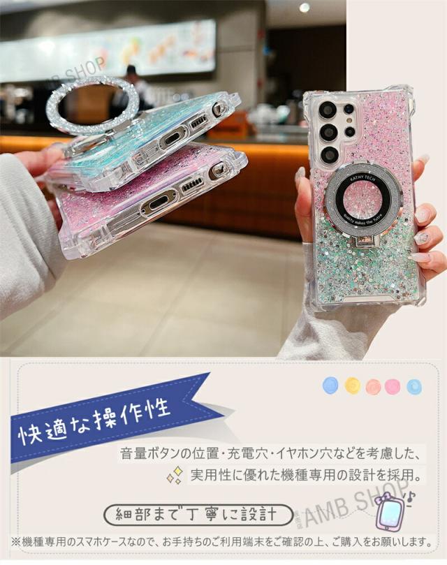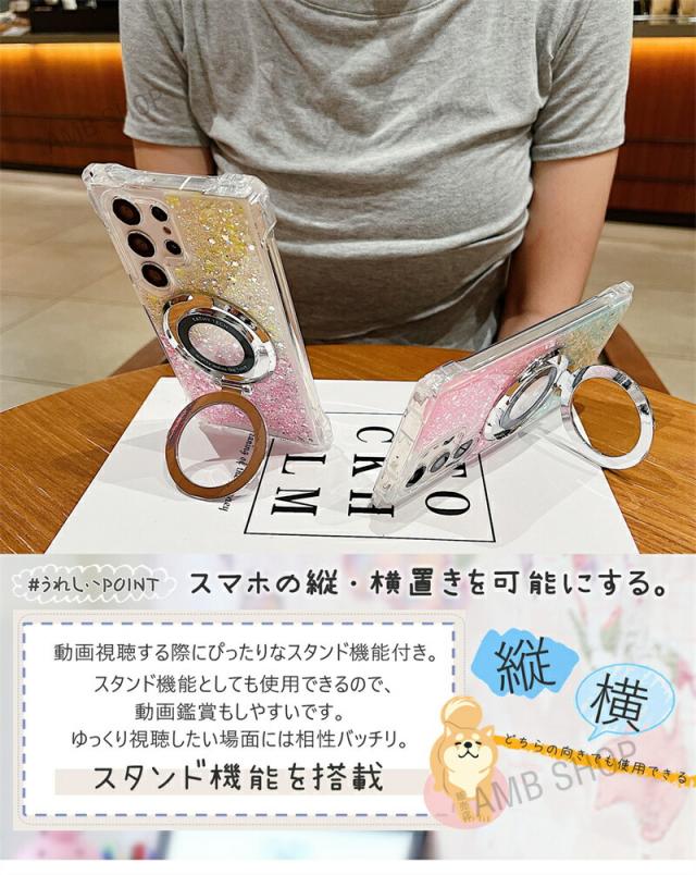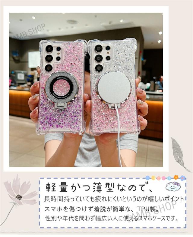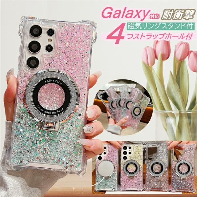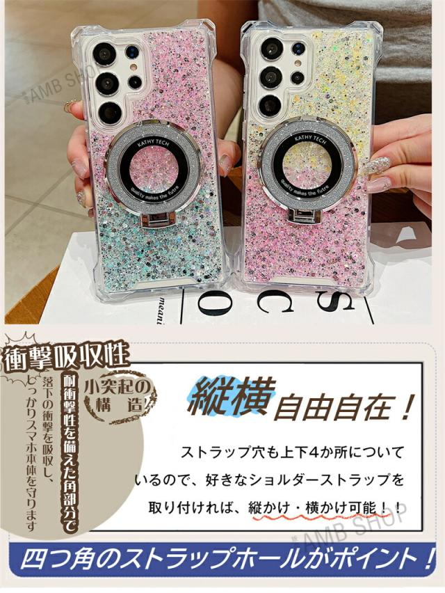 4角 ストラップホール Galaxy A54 5G ケース SC53D SCG21 magsafe Galaxy A55 S23FE S22 S24 S22Ultra ケース 背面 リング付き GalaxyS24ケース キラキラ スタンド GalaxyA53ケース GalaxyA54ケース おしゃれ 耐衝撃 かわいい magsafe グリッター 可愛い 使いやすい 韓国