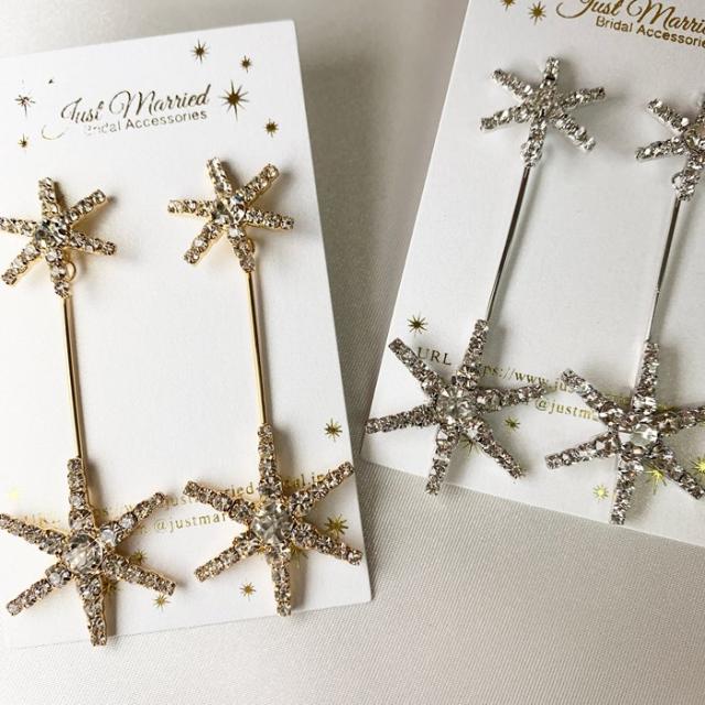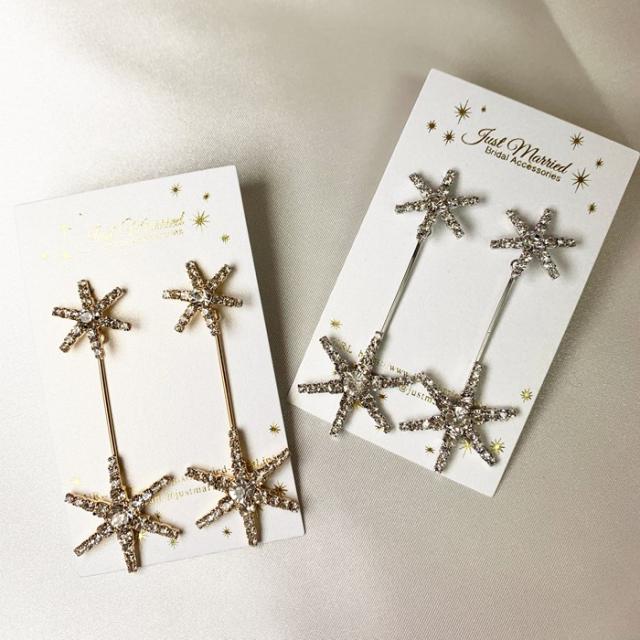 ブライダル ピアス 大ぶり 通販 ブライダルピアス ブライダルアクセサリー ウェディングアクセサリー スターモチーフ 揺れるタイプ ゆれる 結婚式 花嫁 新婦 披露宴 パーティー 二次会 2次会 前撮り ウェディングドレス クリスタル Stardust E-82