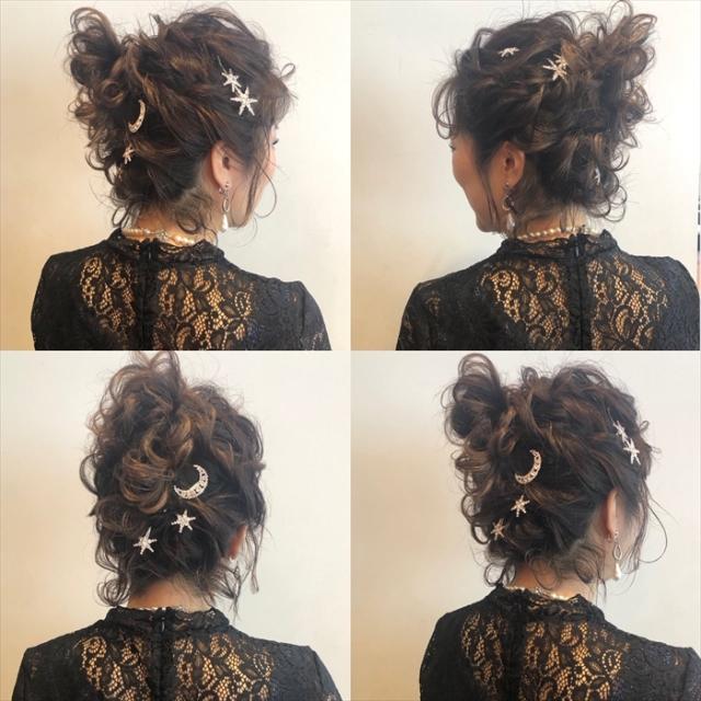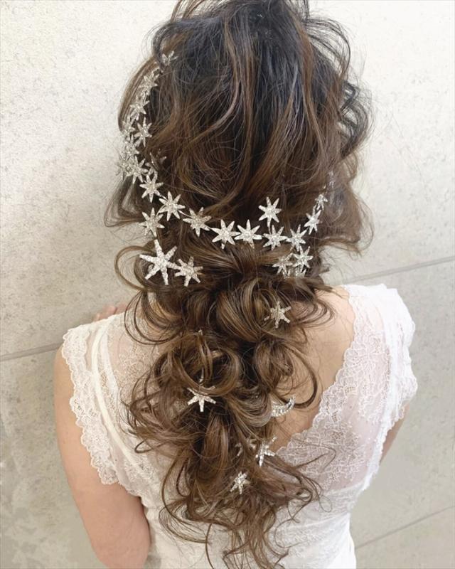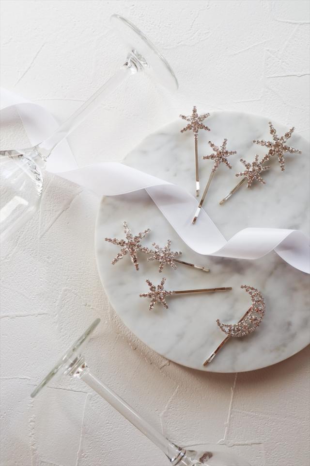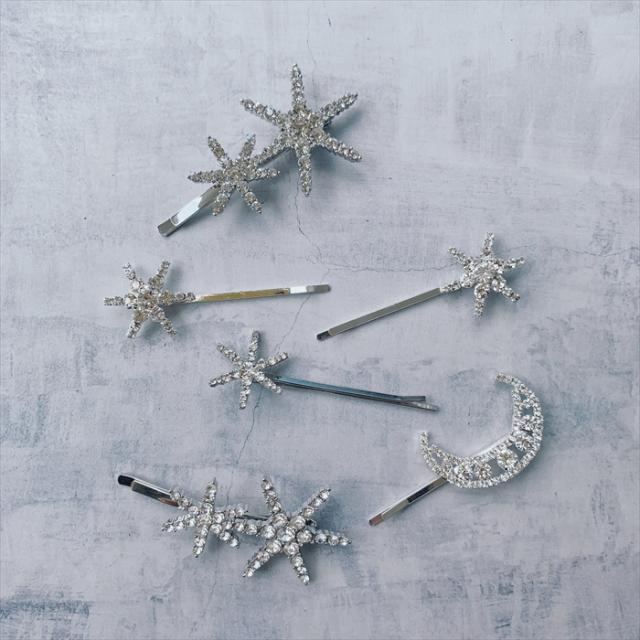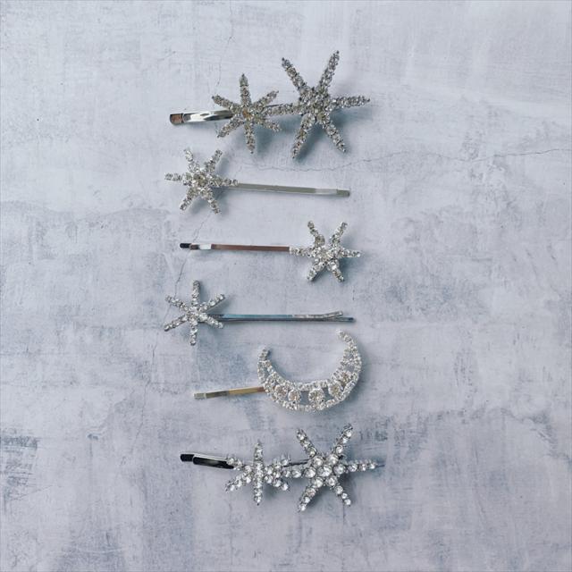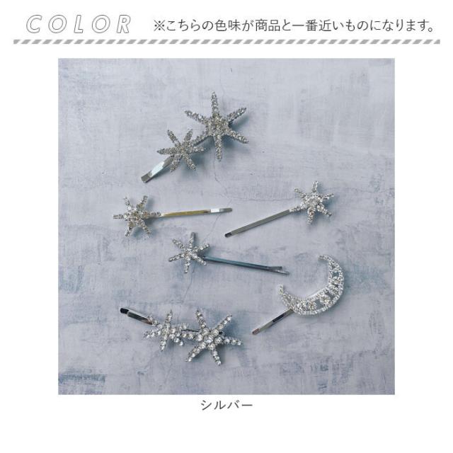 ブライダル ヘアアクセサリー 通販 ヘアピン 6本セット 星 大きめ スターモチーフ 月モチーフ おしゃれ 大人 結婚式 花嫁 披露宴 パーティー 二次会 2次会 前撮り ウェディングドレス Stardust H-107 ブライダル小物 ウェディング小物