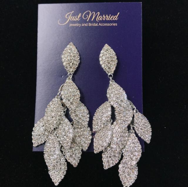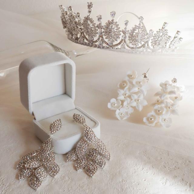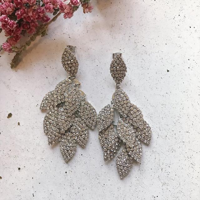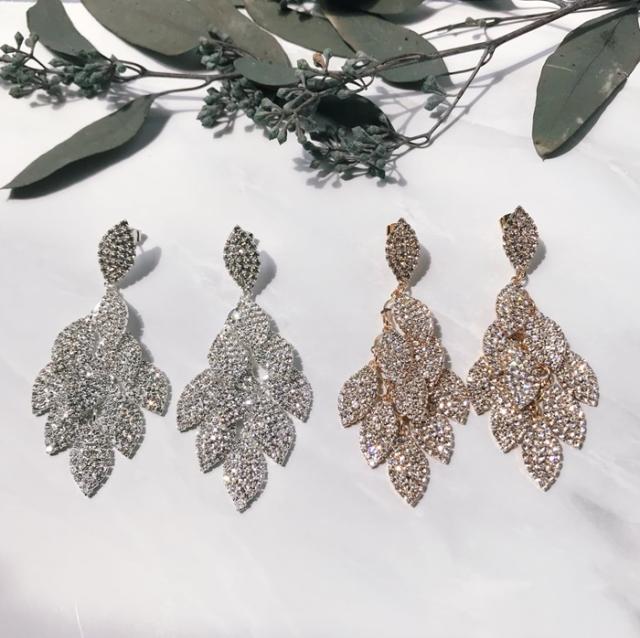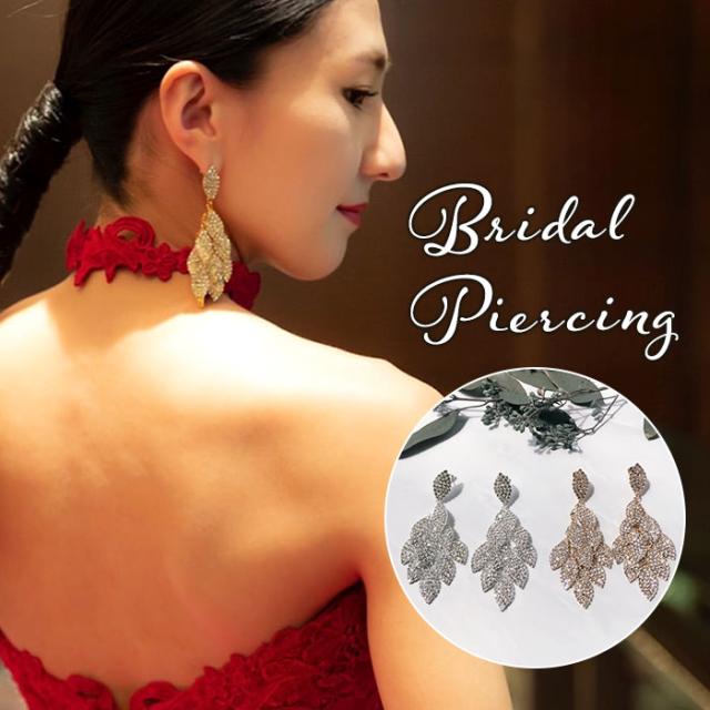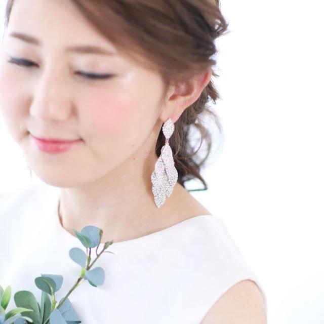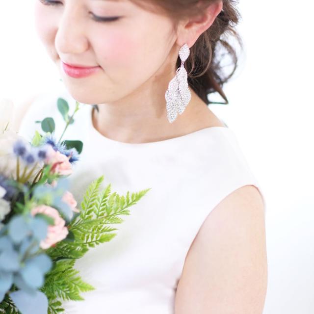 ブライダル ピアス 大ぶり 通販 ブライダルピアス ブライダルアクセサリー ウェディングアクセサリー リーフモチーフ 揺れるタイプ ゆれる 結婚式 花嫁 新婦 披露宴 パーティー フォーマル 二次会 2次会 前撮り ウェディングドレス クリスタル E-51