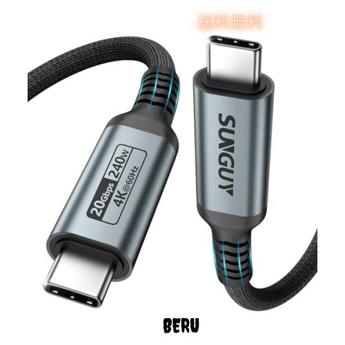 SUNGUY 240W USB C to C ケーブル PD超高速充電タイプC ケーブル, 20Gbps高速データ転送 4K@60Hz映像出力 Type-C ケーブル, 高耐久断線防