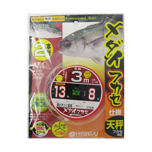 ハリミツ C-76 フカセメダイ 2本針 3m 針13号-ハリス8号