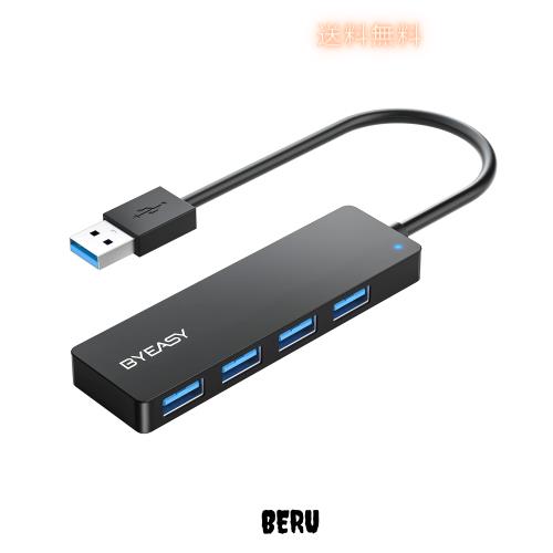 BYEASY USBハブ 3.0 増設 拡張 4ポートUSB A ハブ 高速転送 スリム軽量ハブ 4in1 USB ハブ MacBook/iMac/Surface Proに対応 ノートPC適用